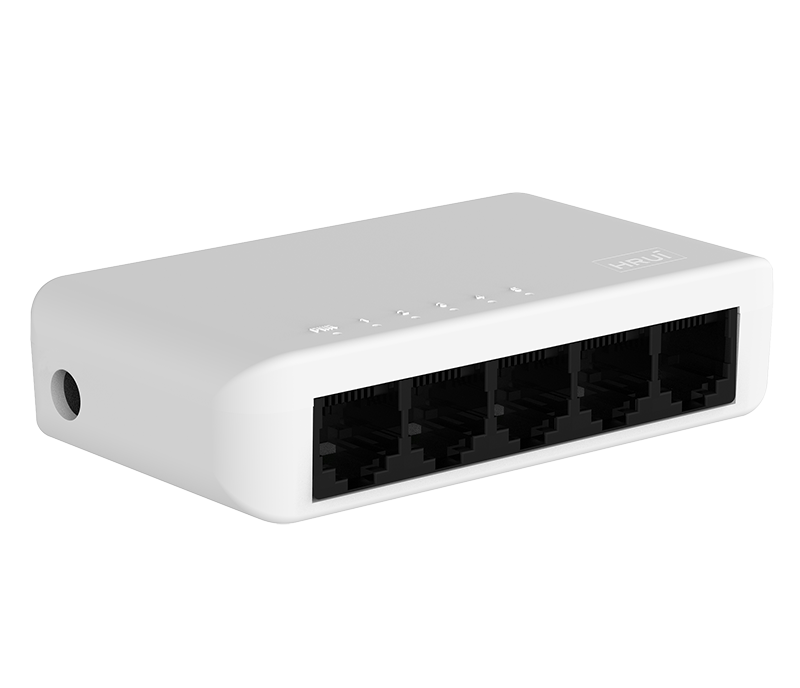 سوئیچ HRUI مدل (plus) HR-SWG0050+ یک سوئیچ 5 پورت غیر مدیریتی است. این سوئیچ قابلیت POE ندارد. همچنین پهنای باند این سوئیچ 10 گیگابایت است که می تواند به خوبی وظیفه انتقال داده های شما را انجام دهد. تعداد مک آدرس های دستگاه میزان 2 هزار عدد و عمر مفید این دستگاه در حدود 100000 ساعت میباشد.